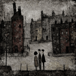In the grey courtyard, Faces blur with crooked walls, Time feels paper-thin.