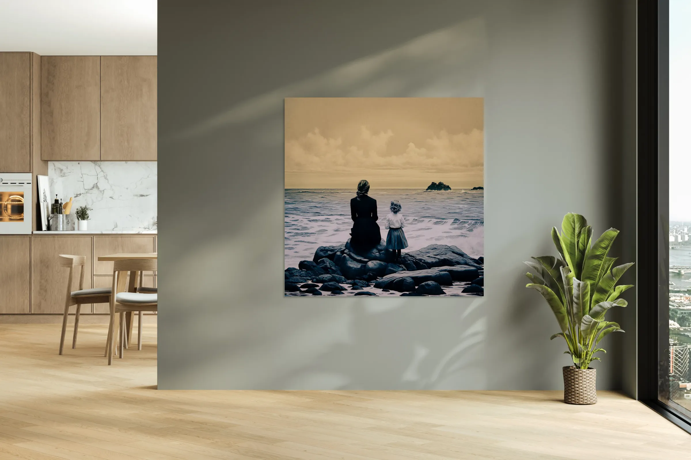 Foam hums on the rocks, Child and mother share the hush, Memory takes form.