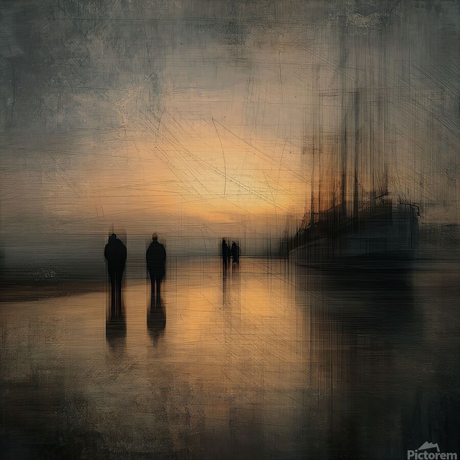 Footsteps blur the shore, Paint-scratched light trembling slow, Evening unravels.