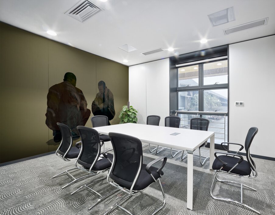 Direct print on metal to provide a white smooth satin finish with controlled light reflection.