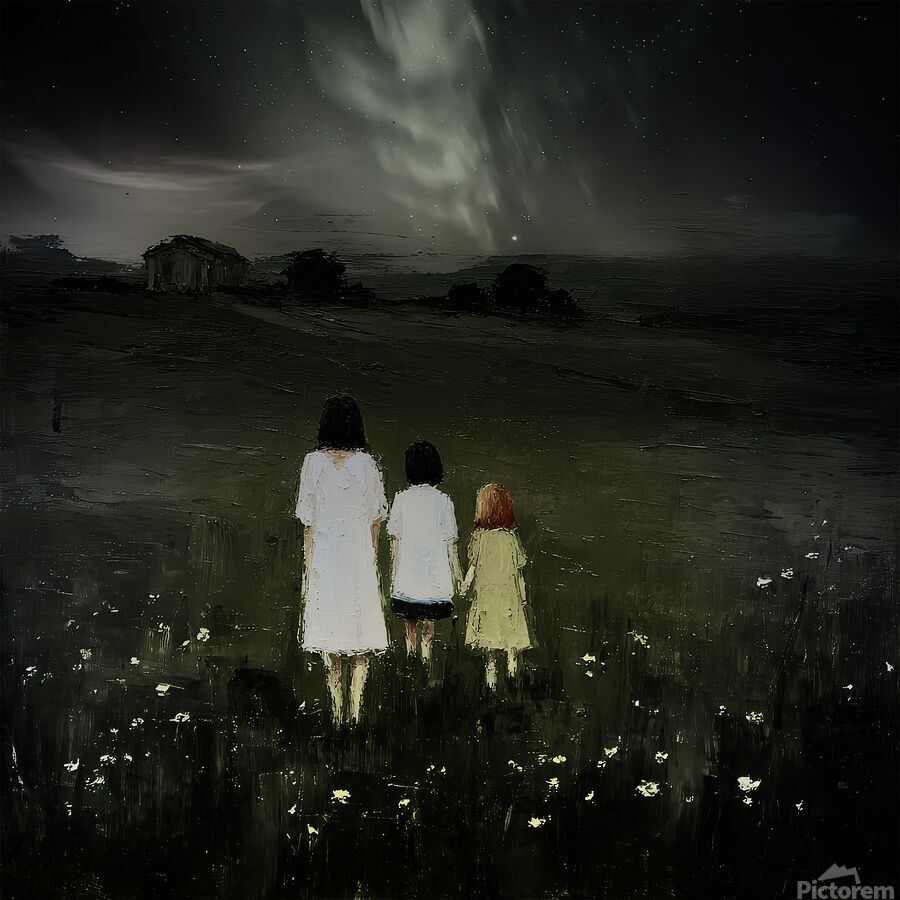 Aurora breathing, Soft green fire above their heads— Who is calling them. Youth stands at the edge of knowing—open, exposed, and still capable of wonder.