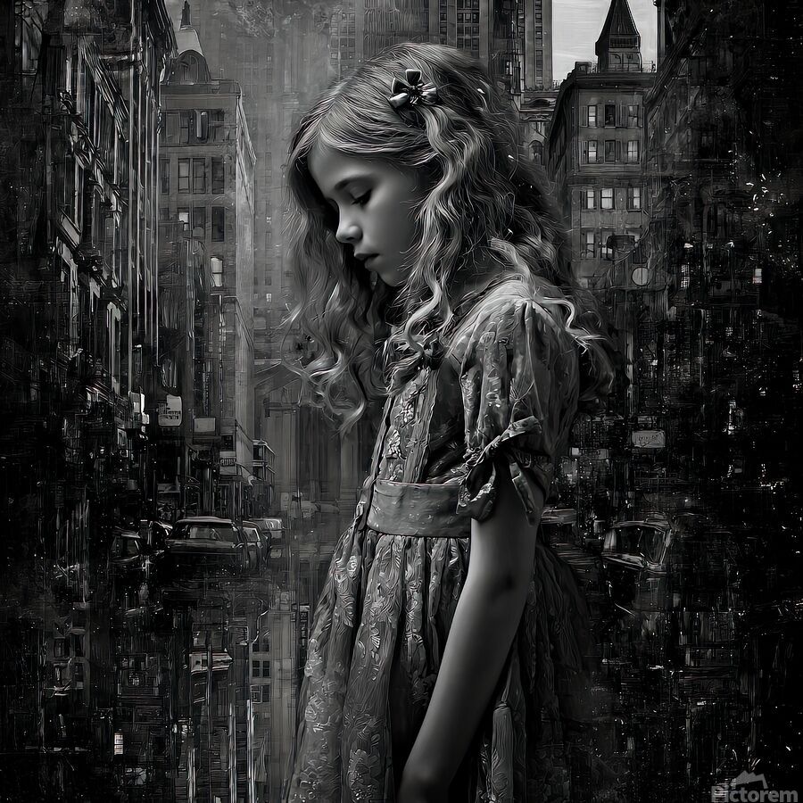 Concrete whispers low, Her shadow bends with the streets, Childhood fades in gray.