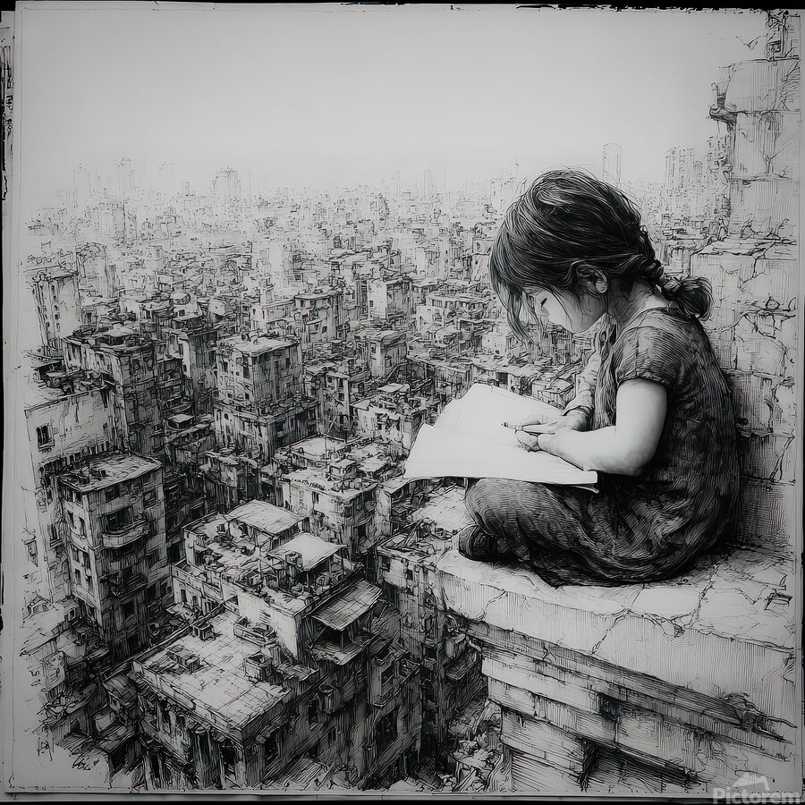 Small hands trace a world— Of crowded roofs and silence, While the city drifts. From a restorative justice lens, the child represents renewal through the next generation, quietly repairing what society fractures.